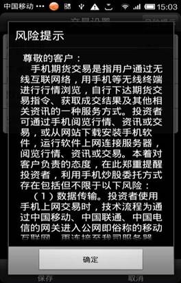風險提示:選擇右上角“風險提示”時,在登錄交易的時候就會出現風險提示對話框。