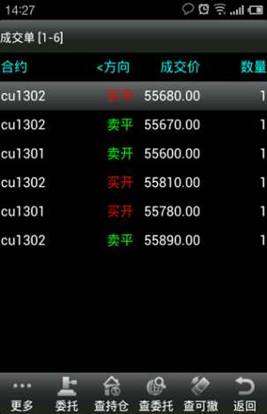 查成交:點擊“查成交”,進入成交單界面,可以查看到已經成交合約的詳細信息。