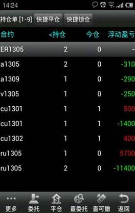 查持倉:點擊“查持倉”,可以看到持倉的合約,在持倉單界面可以對需要平倉的合約