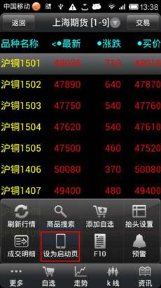 ◇ 將當(dāng)前頁面設(shè)為啟動掌上財富后顯示的首頁,每次開機(jī)都顯示此頁面。(在系統(tǒng)設(shè)定中可刪除或在當(dāng)前頁面“更多”中點擊“取消啟動頁”)