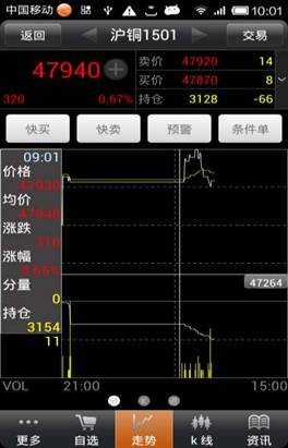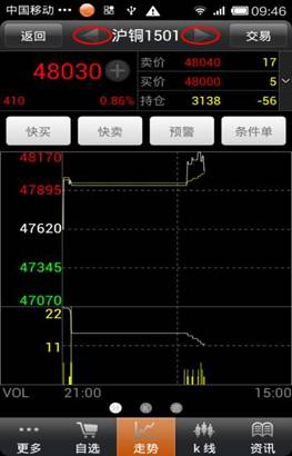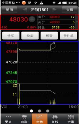 快捷操作:在走勢界面可以實現快買、快賣、設置預警/條件單的快捷操作。
