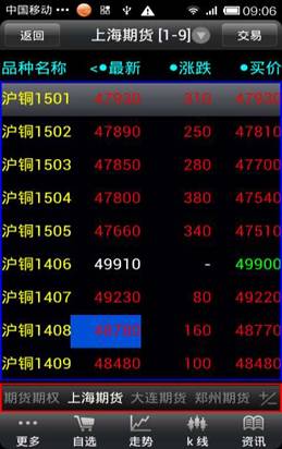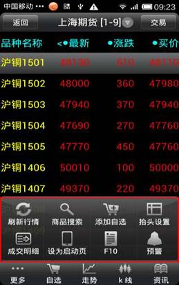 商品搜索:點擊“更多”--“商品搜索”,可以快速切換到需要查看的品種信息。