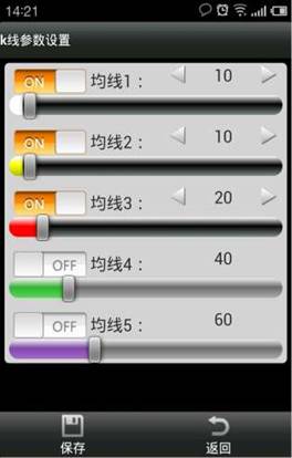 軟件默認顯示 3 K 均線,最多可支持 5 條均線,設置完成需點擊“保存”。